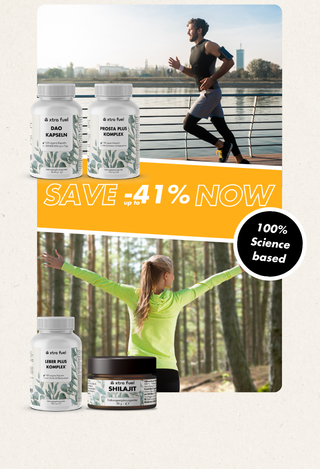 Bei XTRA FUEL findest du eine sorgfältig kuratierte Auswahl an Nahrungsergänzungsmitteln, die sowohl auf traditionellem Wissen als auch auf neuesten wissenschaftlichen Erkenntnissen basieren. Unser Sortiment umfasst besondere Naturschätze wie Shilajit Harz und Shilajit Kapseln aus den unberührten Regionen des Himalaya stammt. Dieses wird seit Jahrhunderten in der traditionellen ayurvedischen Lehre verwendet. Für Sportler und alle, die ihre körperliche Leistungsfähigkeit unterstützen möchten, bieten wir moderne Formulierungen mit pflanzlichen Inhaltsstoffen wie Fadogia Agrestis und Turkesterone an. Für Menschen mit besonderen Bedürfnissen haben wir spezielle Enzyme wie DAO Diaminoxidase Kapseln in unser Sortiment aufgenommen, die in höchster Reinheit gewonnen werden. Ergänzend dazu bieten wir ein Prostata Komplex zur Unterstützung der Männergesundheit sowie D3 K2 Kapseln für die optimale Versorgung mit diesen wichtigen Vitaminen an. Alle unsere Nahrungsergänzungsmittel wurden mit dem Ziel entwickelt, dich dabei zu unterstützen, dein natürliches Gleichgewicht zu bewahren und dein allgemeines Wohlbefinden zu fördern.
